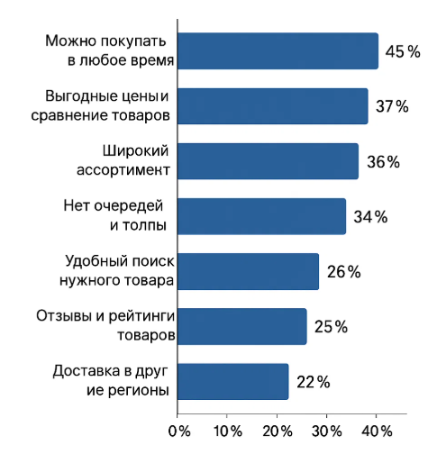 Кроме того, маркетплейс делает бизнес гибче: покупатель получает больше вариантов и удобство. Согласно данным Statista, почти половина пользователей выбирают маркетплейсы именно за эту гибкость.